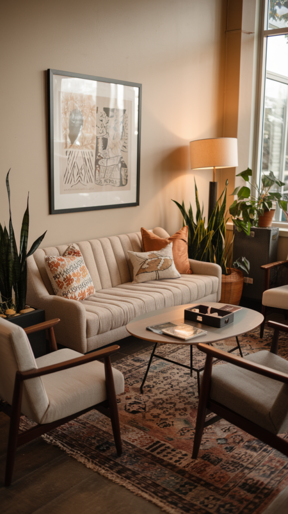 Decorate your walls with framed artwork or personal photos that bring warmth and character to the room. Choose earthy tones, abstract designs, or calming nature prints for a cohesive look. Arrange them in a gallery wall or as standalone pieces. They add personality and make the space feel lived-in. Perfect for reflecting your style.
