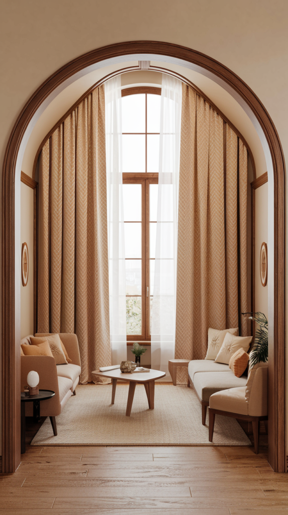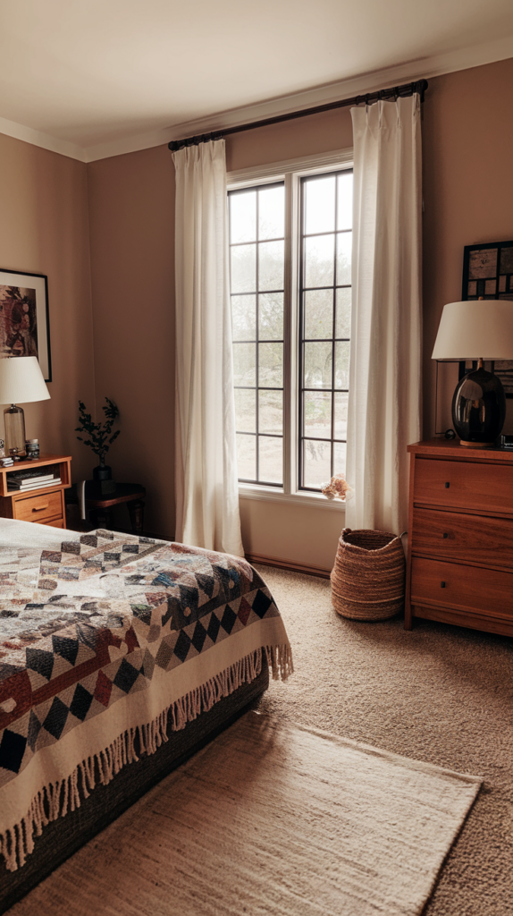 Hang curtains with subtle patterns like herringbone, stripes, or florals for added texture. Choose warm colors or neutrals to complement your room’s theme. Layer with sheer curtains for more flexibility with light. They frame windows beautifully and enhance the cozy feel.