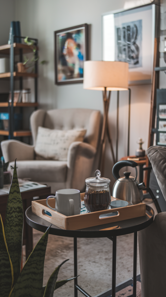 Set up a small coffee or tea station in your room with a tray, mugs, and a kettle. Add a jar of your favorite teas or coffee pods for convenience. This little nook makes your room feel luxurious and practical. Great for enjoying quiet moments.