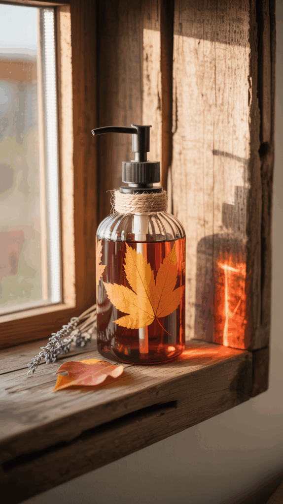 Add a touch of autumn to your bathroom with a fall-themed soap dispenser. The vibrant leaves and warm colors bring a cozy feel to the space. It’s a simple way to celebrate the season while keeping things practical!