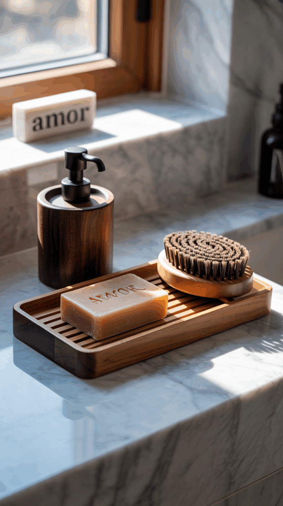 Wooden bath accessories add a warm touch to your space. They blend nicely with fall decor, creating a cozy vibe. Using items like wooden soap dishes or brushes can elevate your bathroom’s style.