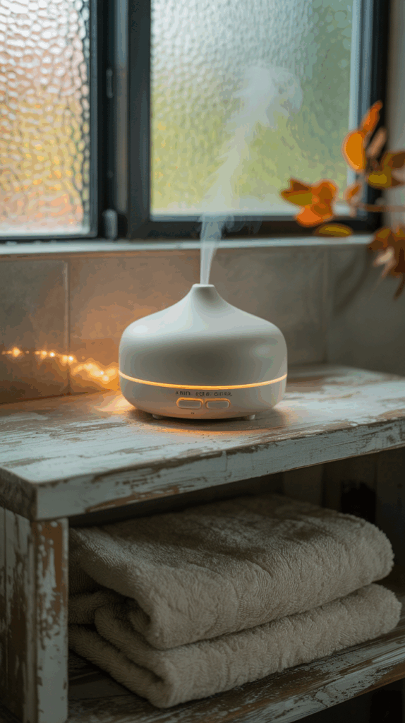 A scented oil diffuser can bring warmth to your fall bathroom decor. Choose earthy scents like cinnamon or pumpkin spice to create a cozy vibe. It’s an easy way to make your space feel inviting and seasonal!
