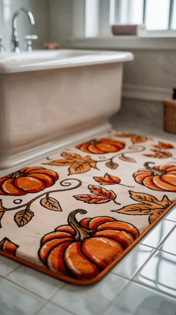 Add a touch of autumn to your bathroom with a harvest-inspired bath mat. These mats, featuring vibrant pumpkins and leafy designs, bring warmth and color to your space. Perfect for setting the seasonal mood, they’re both functional and fun!