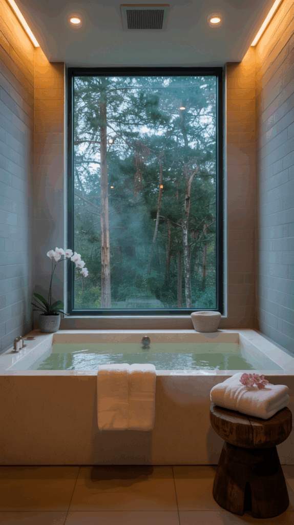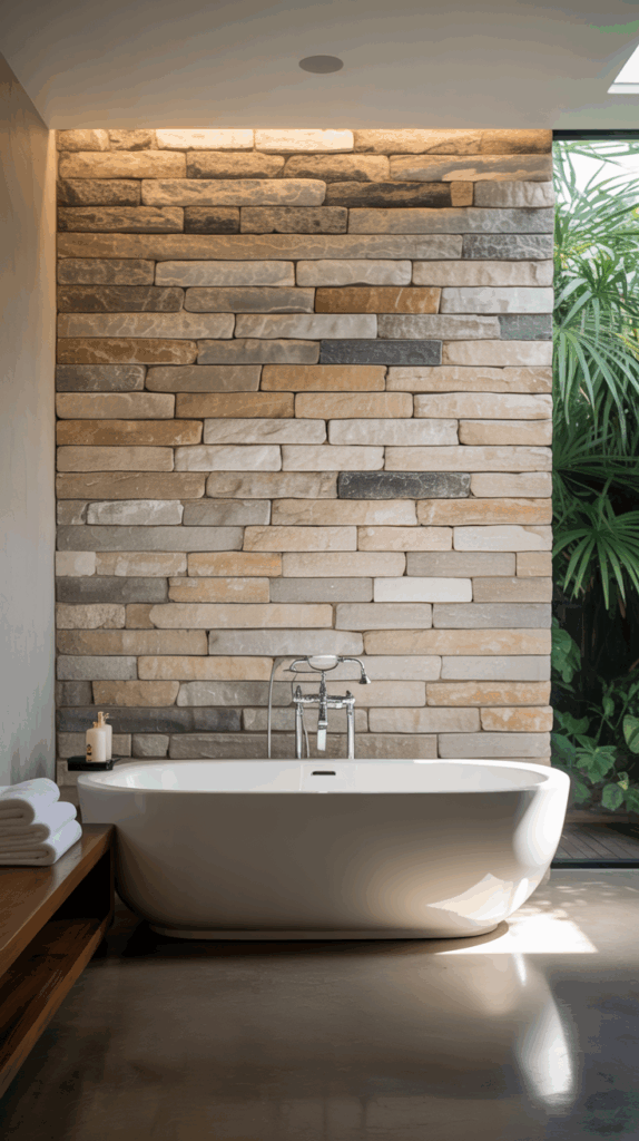 Pro tip: Bring in different textures, not just colors. Rough bark, smooth river stones, soft cotton towels – your bathroom should feel like a nature walk, not just look like one.
