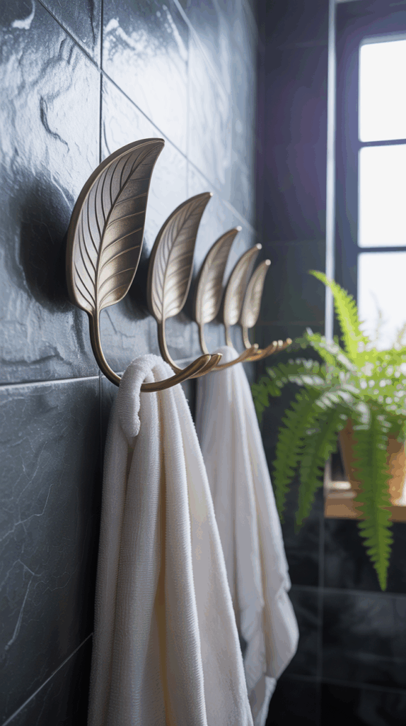 Nature-inspired towel hooks can bring a touch of the outdoors into your bathroom. Hooks shaped like leaves or branches add charm and character to the space. They make hanging towels feel like a little nod to the beauty of fall.