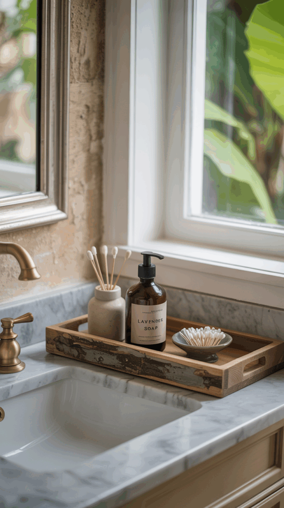 Wooden trays are a simple way to keep your bathroom organized and stylish. They can hold your favorite lotions and soaps while adding a warm touch to the space. Plus, they make it easy to grab your essentials without the clutter!