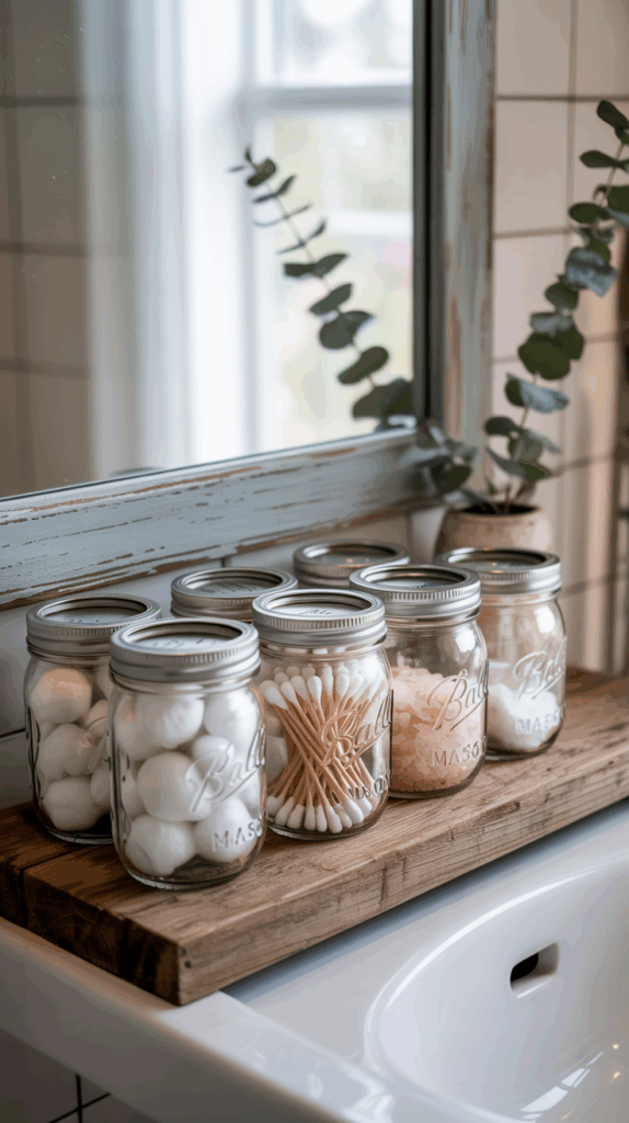 Mason jars are a fun and practical way to keep your bathroom organized. You can fill them with cotton balls, swabs, or even bath salts for a cute touch. Plus, they add a rustic vibe that’s perfect for fall!