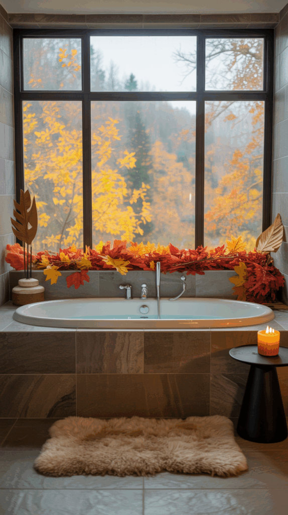 Natural stone decor brings a warm and earthy vibe to your bathroom. The soft hues and textures of stone create a serene atmosphere that’s perfect for relaxation. Consider adding stone accents or tiles for a stylish fall touch.