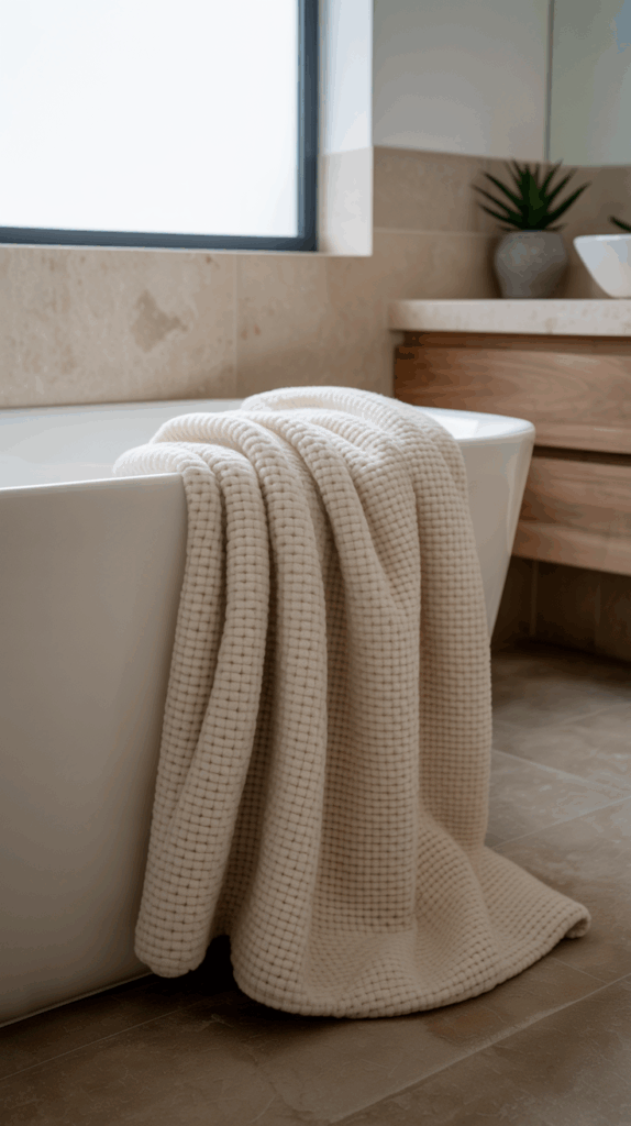 Adding warm textiles is a great way to make your bathroom feel cozy this fall. Think soft towels, plush rugs, and knit throws that invite you to relax after a long day. These elements turn your space into a warm retreat, perfect for those chilly autumn evenings.