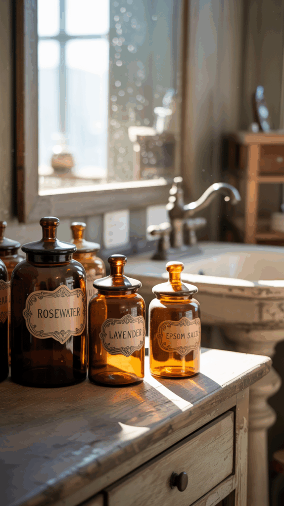 Vintage apothecary jars add a charming touch to any bathroom decor. They can hold everything from bath salts to cotton swabs, keeping your space organized and stylish. With their classic look, these jars are perfect for showcasing your favorite bathroom essentials this fall.