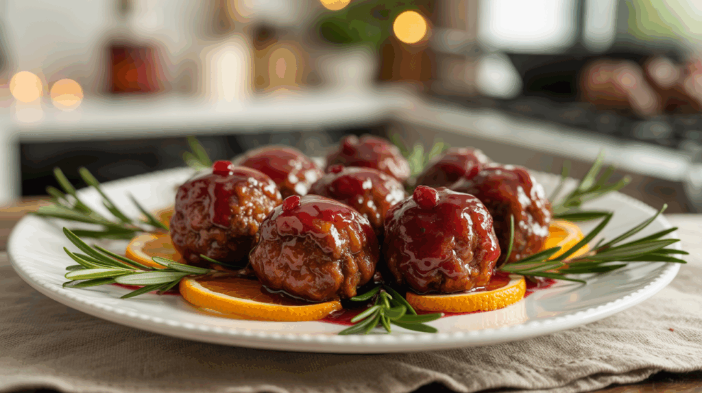 What I love most is how foolproof they are. You don’t need fancy ingredients—just ground beef or turkey, cranberry jelly, a splash of orange juice, and a drizzle of balsamic vinegar. Toss it all in the slow cooker, and within an hour or two, you’ve got tender meatballs coated in a glossy, tangy-sweet glaze that tastes like Christmas in a bite.