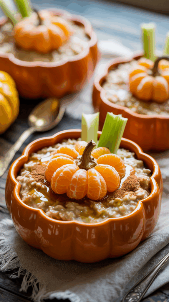 Make a warm bowl of pumpkin spice oatmeal and top it with mandarin oranges arranged like little pumpkins. Add tiny celery or green apple sticks as stems. Drizzle with maple syrup and a dusting of cinnamon for that pumpkin patch aroma. Serve in a pumpkin-shaped bowl or with a cute orange spoon for full effect. This cozy breakfast screams fall and Halloween without any processed sugar. It’s hearty, sweet, and nourishing. Kids love the “mini pumpkins” they get to eat. It’s like carving pumpkins—but with a spoon.