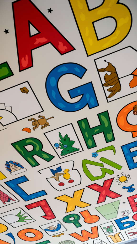 Paint or use decals to display the alphabet, numbers, or educational graphics overhead. Incorporate vibrant colors to make it fun and engaging. This is a great way to combine learning with design. Perfect for preschoolers or early learners.