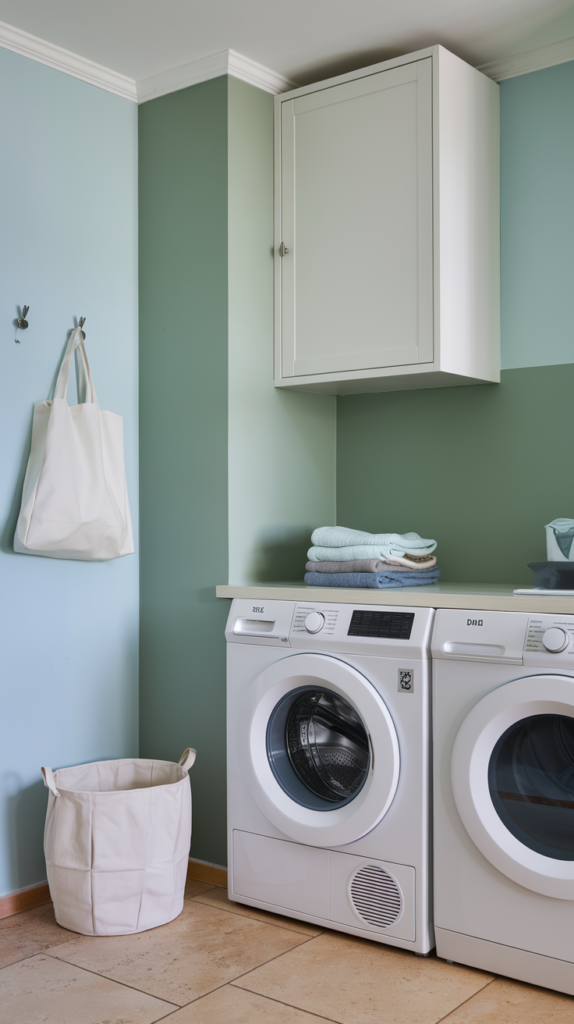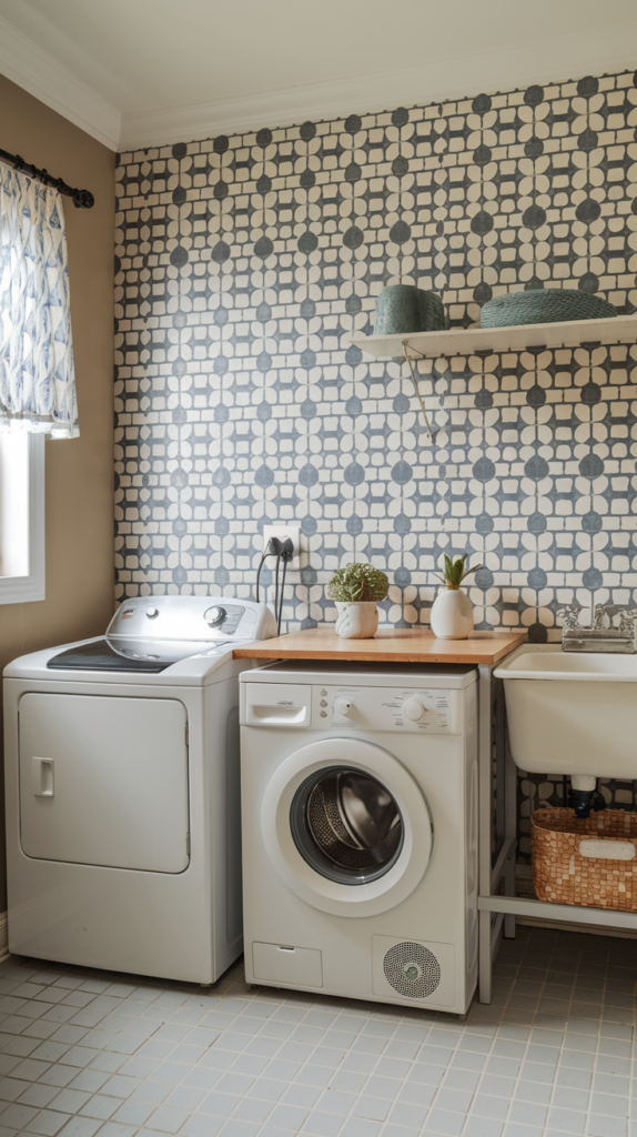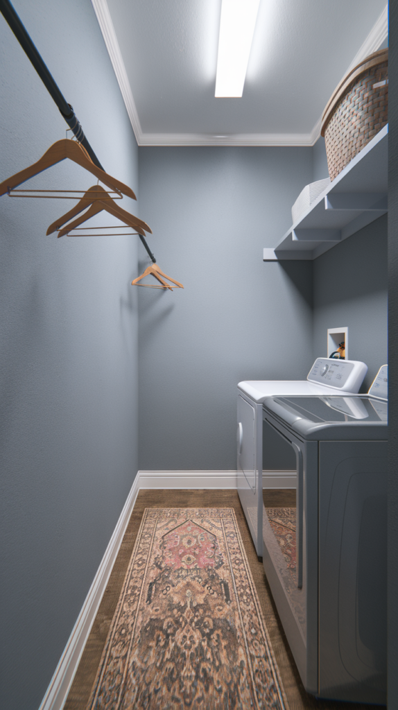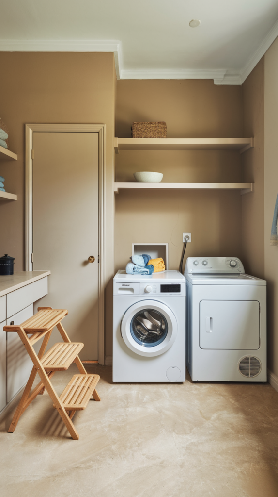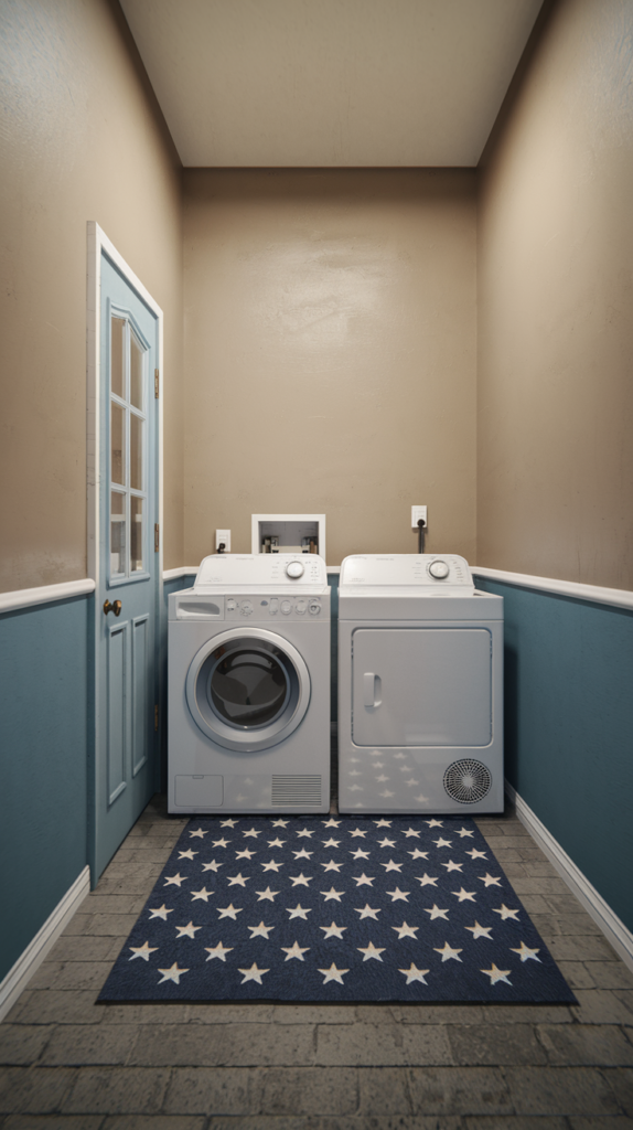 Add a washable rug or mat in front of the washer and dryer for comfort and style. Choose a pattern or color that complements your room’s theme. Rugs can also help reduce noise and protect your floors. Look for budget-friendly options online or in discount stores. A small addition that makes a big difference.