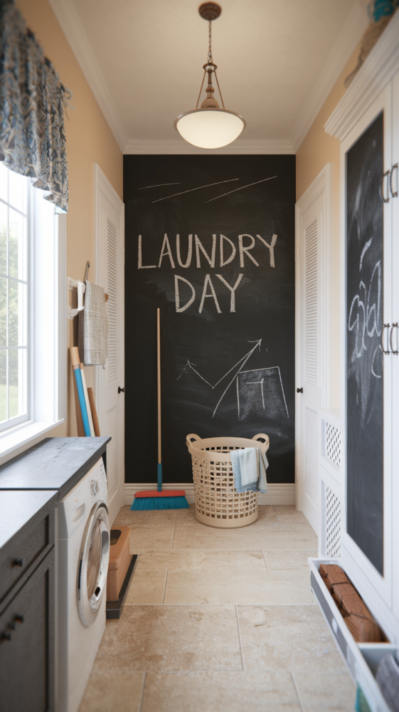 Paint one wall or a cabinet door with chalkboard paint for a functional and fun addition. Use it to jot down reminders, to-do lists, or motivational quotes. Kids will love doodling on it, too! This interactive feature adds charm and practicality. An affordable project that costs less than $20.