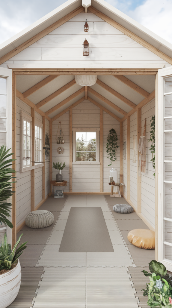 If you’re using your she shed as a yoga studio or workout space, foam tiles provide a soft, cushioned surface. These tiles are easy to install, available in various colors, and great for shock absorption. They’re also water-resistant and simple to clean. Choose neutral shades for a calming effect or vibrant colors for an energizing space. Ideal for fitness lovers or those who want extra comfort underfoot.