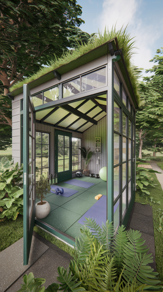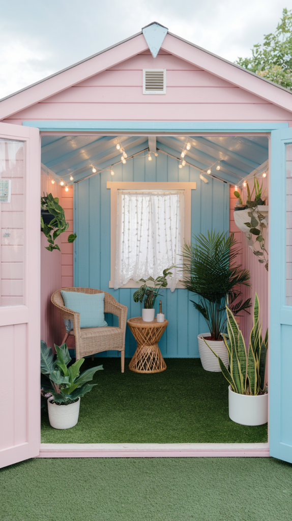 Bring the outdoors inside with artificial grass flooring. This works especially well for she sheds used as garden escapes, tea rooms, or relaxation spaces. Choose a high-quality, soft grass texture for a natural feel underfoot. Add potted plants and string lights for an enchanting garden retreat. A playful, fun flooring choice for nature lovers.