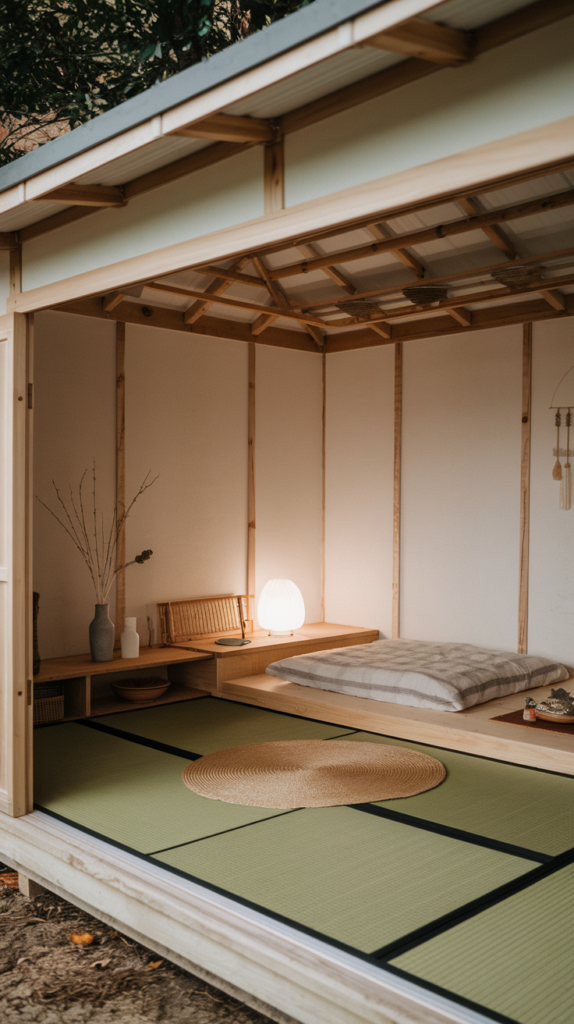 Bring Japanese minimalism into your she shed with traditional tatami mats made from woven rush grass. These mats create a soft, natural surface that’s ideal for meditation, yoga, or tea rooms. Their fresh, earthy scent enhances the calming atmosphere of the space. Pair them with simple wooden furniture and soft lighting for a truly peaceful retreat. A perfect flooring choice for those seeking serenity and mindfulness.