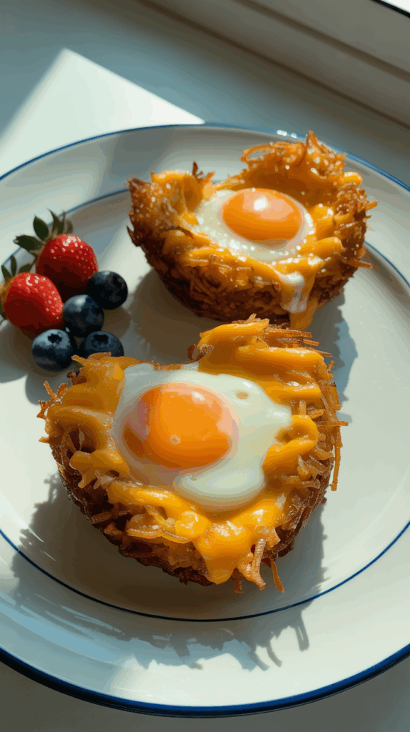 Grab frozen hash browns (or shred your own if you’re feeling fancy), press them into silicone heart molds, and bake until crispy. Then crack in an egg and bake again until just set, for a built-in hash brown + egg breakfast nest. Top with shredded cheese or a sprinkle of bacon bits if you want to amp it up. These feel super diner-style, but they’re just made in the oven with minimal cleanup. My son calls them “egg hearts” and thinks I’m a chef when I make them. Serve with a little fruit on the side to balance the savory vibe. These are perfect for kids who aren’t into sweet stuff first thing in the morning. They also reheat great in the toaster oven the next day.