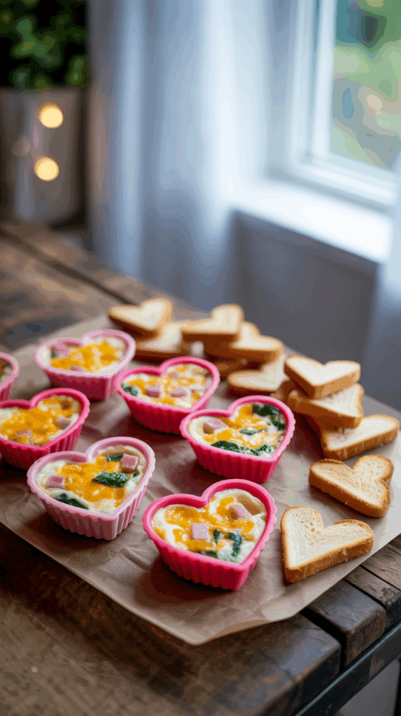 Use a silicone heart mold (the kind you’d use for baking or candy) to bake tiny egg bites with your kid’s favorite mix-ins—cheddar, ham, spinach, even leftover broccoli if you’re feeling brave. Pour in whisked eggs, bake until puffy, and pop them out to reveal adorable heart-shaped protein bombs. They’re like little breakfast hugs in food form. Serve with toast soldiers or mini heart-cut toast on the side for dipping. These freeze well, too, so you can make a batch ahead of time. I always feel like a super parent when I serve these—like, who made eggs into a heart? Oh yeah, I did. And my picky eater? Shockingly into them. It’s like the shape makes them magically taste better.