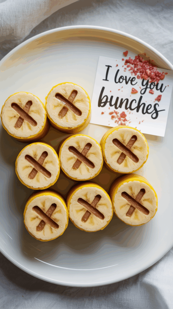 Spread a tortilla with peanut butter, place a banana on top, and roll it up tight. Slice into coins, then alternate placing them in an “X” and “O” pattern on a plate. Drizzle with honey or a tiny bit of melted chocolate if you’re feeling generous. This idea takes like 4 minutes but always gets a big reaction because of the tic-tac-toe look. You can write “I love you bunches” on a little card next to it, just for fun. These are great for toddlers and older kids alike, and super portable if you’re eating in the car. My tip: sprinkle a few crushed freeze-dried strawberries on top for crunch. It’s cute, healthy-ish, and actually fills them up.