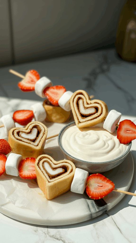 Heart-Shaped Cinnamon Roll Kabobs