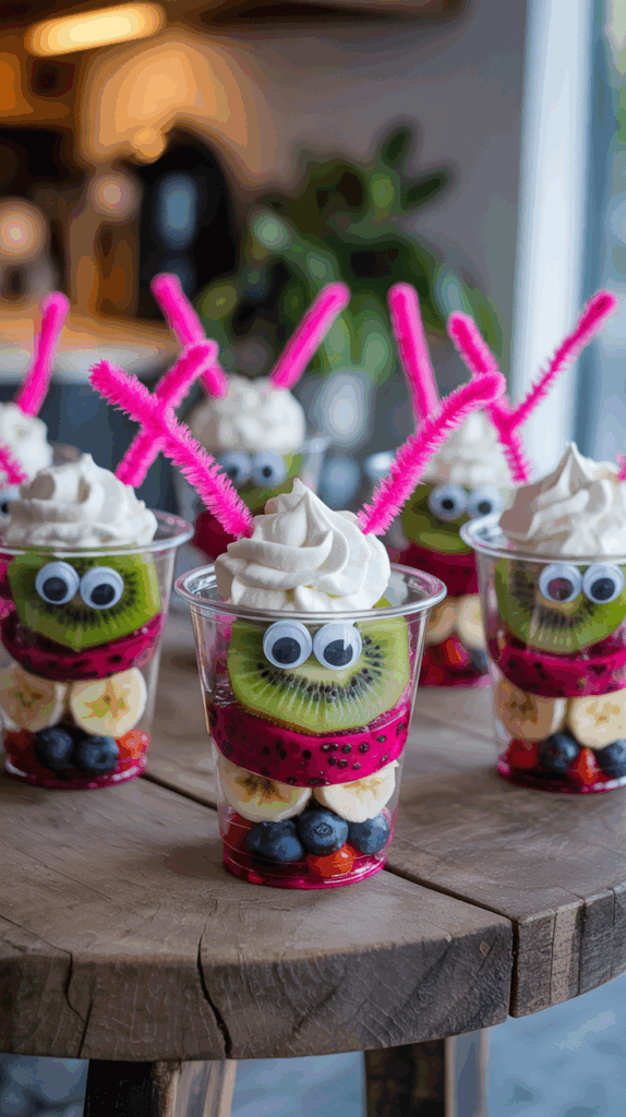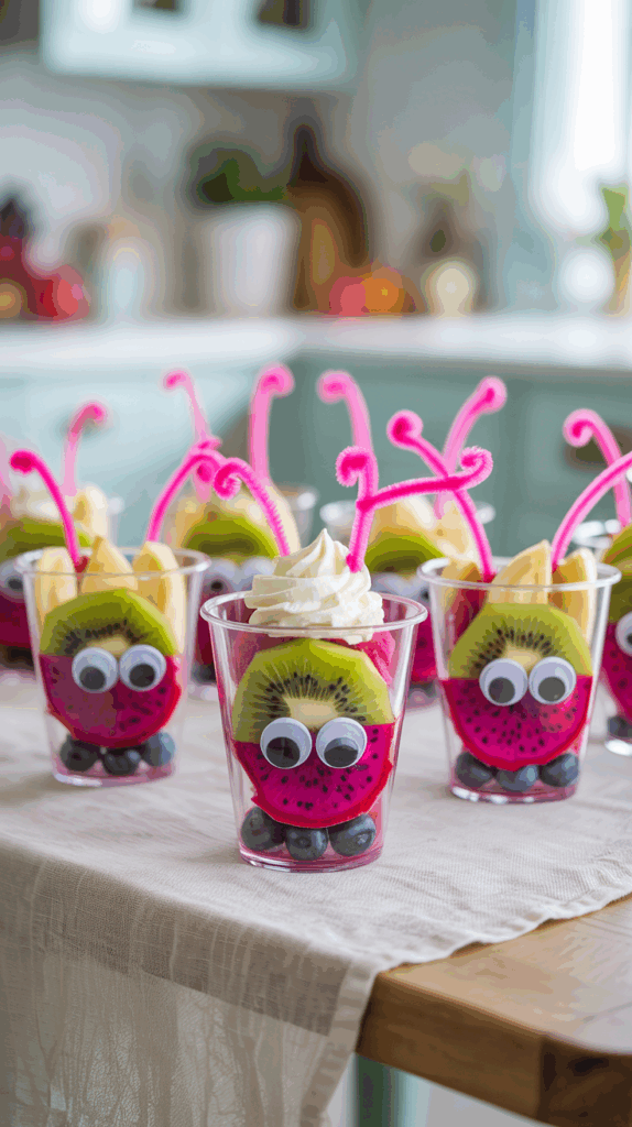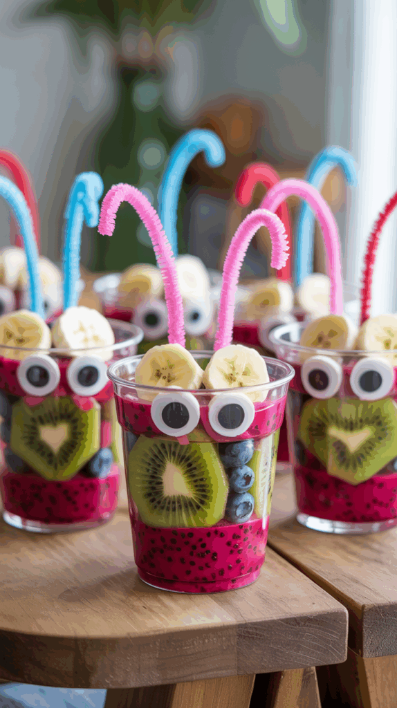 Grab small clear cups or mini mason jars and fill them with layers of pink dragon fruit, kiwi hearts, blueberries, and banana slices. Stick on googly eyes (on the outside of the cup, not the food!) and pipe cleaner antennae to turn them into little “love bugs.” Each one becomes its own edible character, and kids love giving them names before digging in. If you’re short on fancy fruit, just use strawberries and bananas—it still works. You can even add a dollop of vanilla yogurt or whipped cream to the top like a love bug hat. I made these last year for my twins’ class breakfast and they were the first thing gone. No cooking, no stress—just fruit and a little crafting magic. These are perfect if you’re aiming for healthy Valentine breakfast ideas for kids that still bring the fun. Bonus tip: Let your kids make their own bug faces for extra giggles.