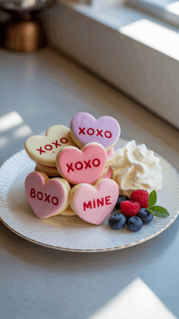 Make mini pancakes (think silver dollar size) and tint them in soft pastel colors using natural food coloring or beet powder for pinks and purples. Once they’re stacked, use a food-safe marker or icing pen to write short messages on them like “XOXO,” “Be Mine,” or “You Rock.” Basically, you’re turning pancakes into edible conversation hearts. Serve with a side of whipped cream and fruit for dipping. It’s interactive, fun, and totally customizable depending on your kid’s mood or reading level. I once used this idea for a playdate breakfast and the kids couldn’t stop giggling. Pro tip: Make the pancakes the night before and just warm them up in the toaster or pan in the morning. You can even tuck a little note under the plate for extra sweetness. These work great as a memory-making tradition—and they photograph beautifully if you’re the Instagram type.